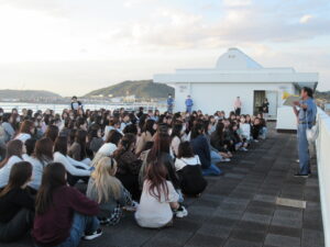 1. 3年生は大学を出発し、鴨川シーワールドへ向かいました。