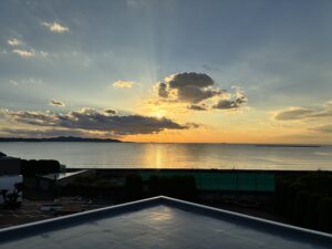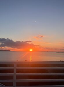1日目の活動の終わりに望秀海浜学寮からとても綺麗な夕陽が見られました。