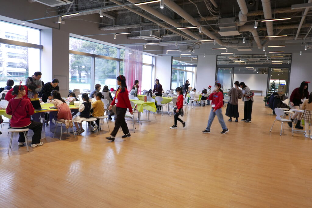 2025年12月21日(日)に昭和女子大学8号館学生ホールで、3年ゼミ生の企画運営による子ども向けワークショップ「みんなおいでよ:クリスマスパーティ」を開催しました。