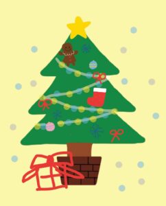 今回は教育の方法と技術(担当:人見礼子先生)の授業内でICTを活用して作成したクリスマスツリーの作品をご紹介します。