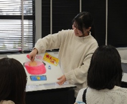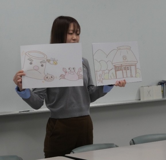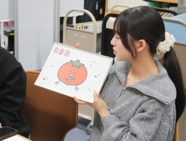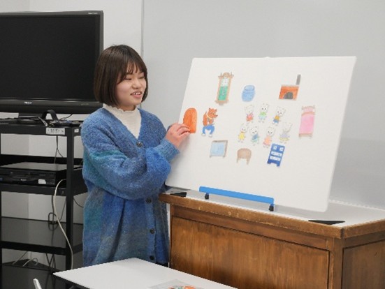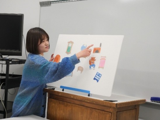 教材を作るだけでなく、どのようにしたら子どもの興味を惹きつけられるかを考えながら演じる声の大きさにメリハリつけたり、クイズ形式にしてみたり試行錯誤し練習を重ねました。