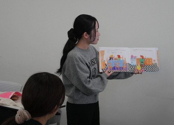 ページをめくるたびに子ども役の学生は「色」に興味津々に!