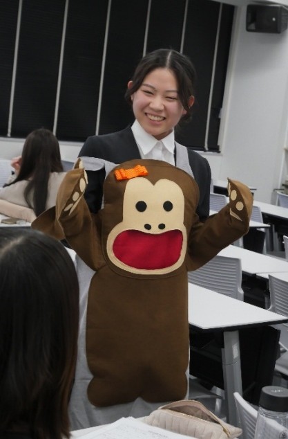 演じる声の大きさにメリハリつけたり、ポケットから人形を出して驚かせたり、どのようにしたら子どもの興味を惹きつけられるかを考えながら演じることの楽しさを感じているようでした💐