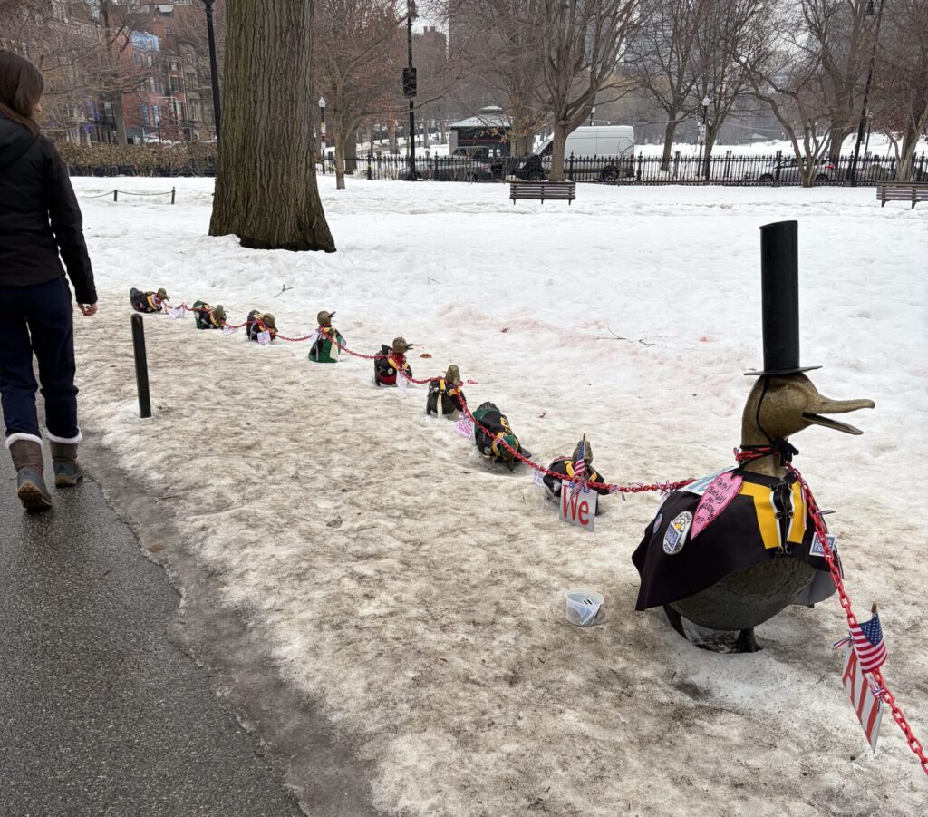 少し進んだ先に絵本『Make Way for Ducklings』をもとにした像があり、その物語について学びました。お母さんガモと子ガモの姿がとても愛らしく、ボストンの街に溶け込んでいるのが印象的でした🏘️🦆💦