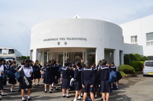 望秀海浜学寮に初めて来た生徒も多く、特徴あるエントランスに興味津々。